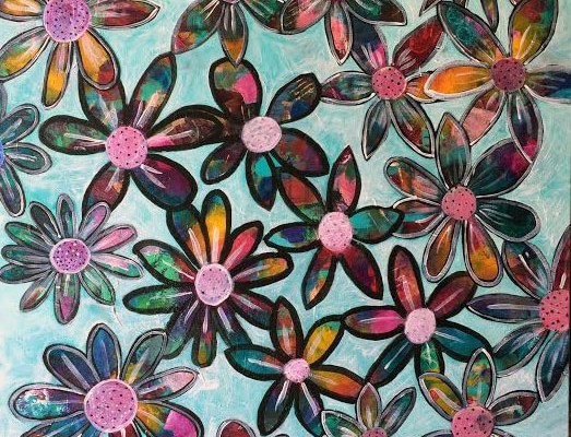 11″ x 14″ acrylic and collage on canvas board